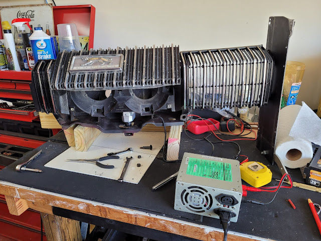 Today I put together a basic configuration for opening/closing the headlight doors. I used a 1.75" long piece of steel tubing fastened to the bottom of the actuator and that piece was then attached to the same location that the vacuum motor attaches to on the headlight bucket, I even used the same bolt. I attached the steel tube to the actuator using a 1/4" wide by 1" long roll pin. The two holes that need to be drilled into the 1.75" round tube are spaced at .8" at the center of the holes. The .8" distance needs to be shortened by .2", so the distance between is .6" for the next piece so that the head light door completely opens.